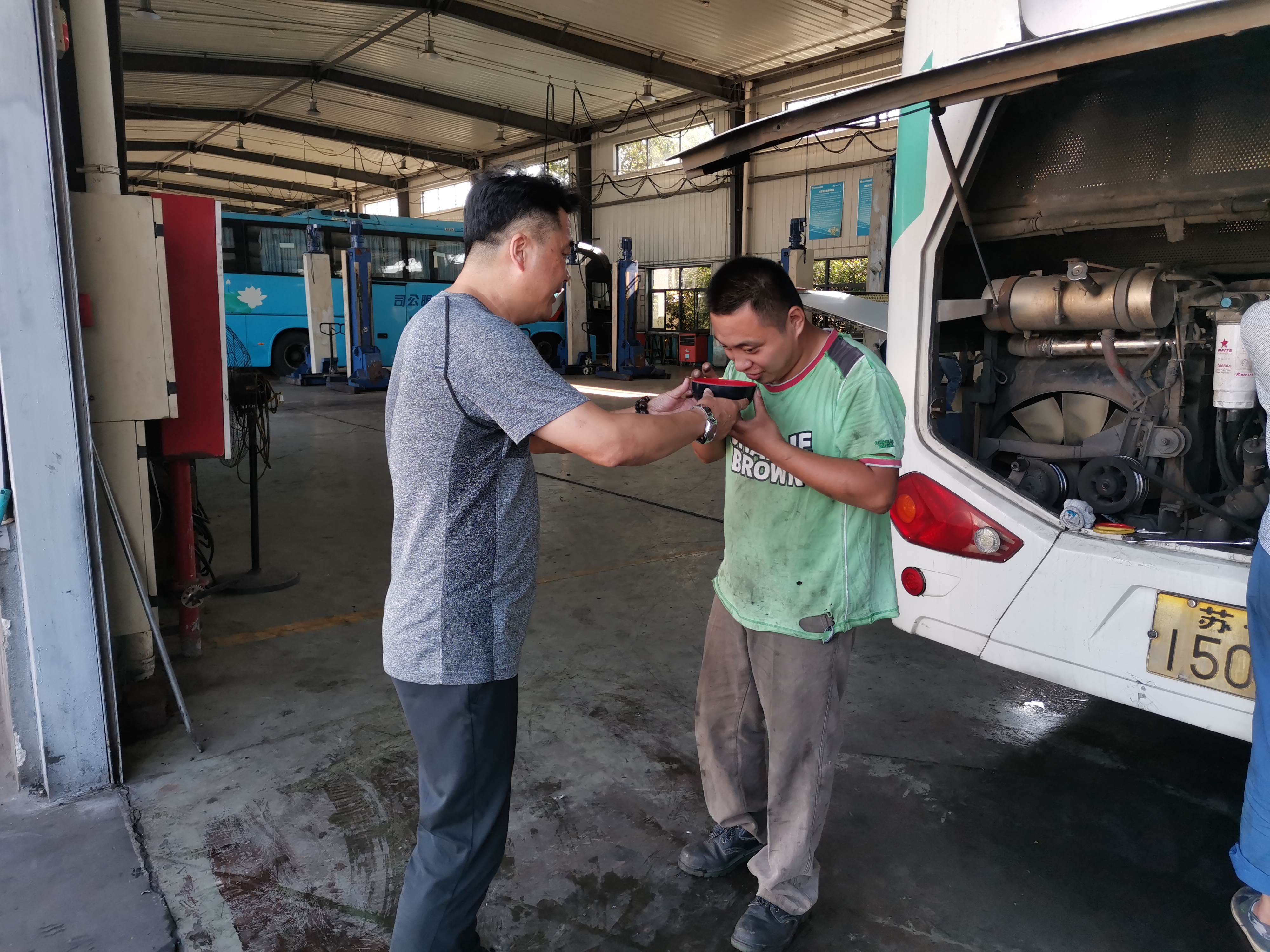 修理廠:針對(duì)高溫天氣,修理廠多種防暑措施并進(jìn),以發(fā)放藿香正氣水、龍虎人丹、毛巾、肥皂等防暑降溫用品以及全天不限時(shí)供應(yīng)礦泉水,堅(jiān)持每日發(fā)放冰鎮(zhèn)綠豆湯等方式,避免職工中暑現(xiàn)象發(fā)生,同時(shí)還要求班組時(shí)刻關(guān)注組員身體狀況,著重關(guān)注“三高”人群每日服藥情況,保持休息室空調(diào)長(zhǎng)效制冷,確保職工及時(shí)有效防暑避暑,營(yíng)造高溫下安全生產(chǎn)氛圍。