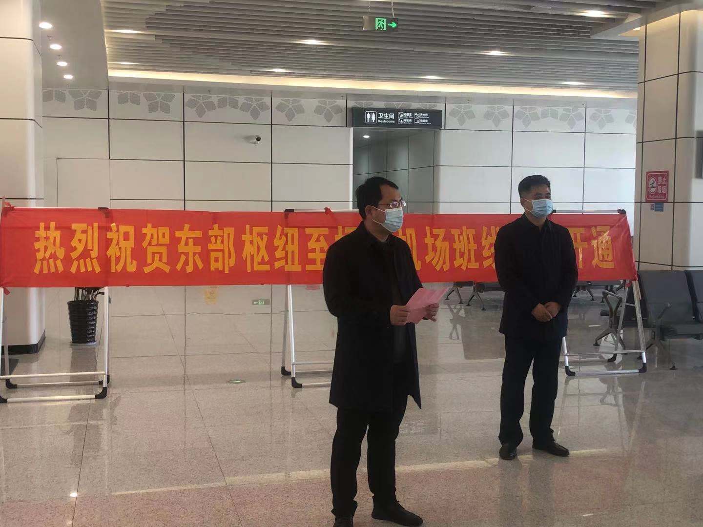 在東部樞紐交通中心現(xiàn)場(chǎng),舉行了簡(jiǎn)短的開通儀式,交通產(chǎn)業(yè)集團(tuán)副總經(jīng)理、揚(yáng)汽集團(tuán)黨委書記、董事長(zhǎng)龔宇峰和揚(yáng)州泰州國(guó)際機(jī)場(chǎng)副總經(jīng)理徐長(zhǎng)富出席了班線開通儀式。龔宇峰董事長(zhǎng)在致辭中表示,在西站、東站和東部樞紐設(shè)立揚(yáng)泰機(jī)場(chǎng)候機(jī)樓,是認(rèn)真落實(shí)市委市政府《關(guān)于做好2020年民生幸福工程的通知》文件精神的重要工程,是滿足人民多層次多樣化民生需求,不斷提升城市客運(yùn)接駁換乘水平的重要舉措。隨著東站和東部樞紐候機(jī)樓的設(shè)立以及機(jī)場(chǎng)班線的開通,揚(yáng)泰機(jī)場(chǎng)在市區(qū)的客運(yùn)服務(wù)網(wǎng)絡(luò)基本形成,高鐵和機(jī)場(chǎng)的零距離換乘成為現(xiàn)實(shí),機(jī)場(chǎng)與城市的距離將被進(jìn)一步拉近。