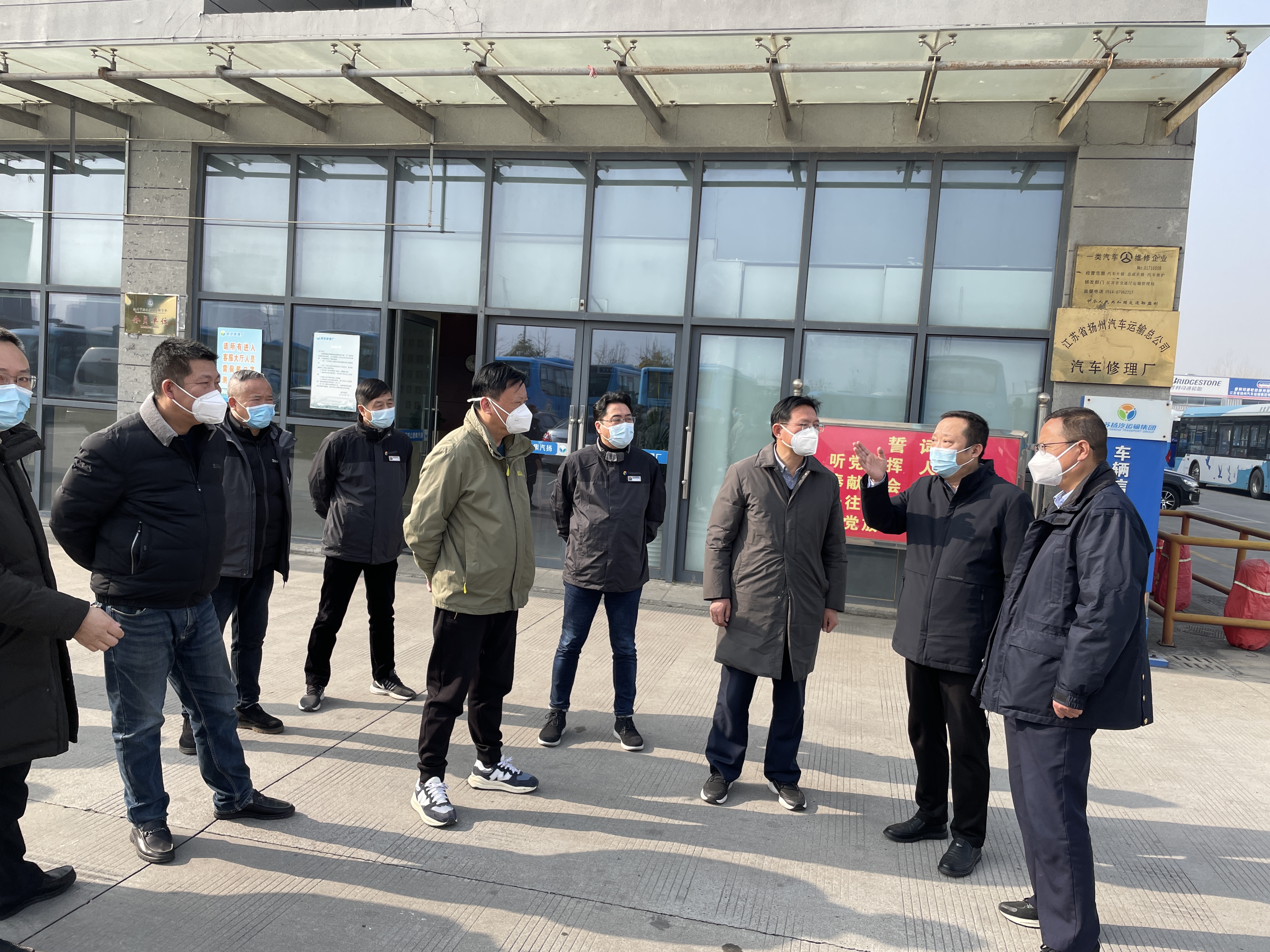 近日,市交通運(yùn)輸局黨委委員、副局長丁澤民帶隊(duì)到揚(yáng)汽修理廠檢查春運(yùn)工作,市交通執(zhí)法支隊(duì)支隊(duì)長沈永余、副支隊(duì)長呂斌,揚(yáng)汽集團(tuán)總經(jīng)理談衛(wèi)國,副總經(jīng)理劉俊及相關(guān)部門負(fù)責(zé)人陪同檢查。