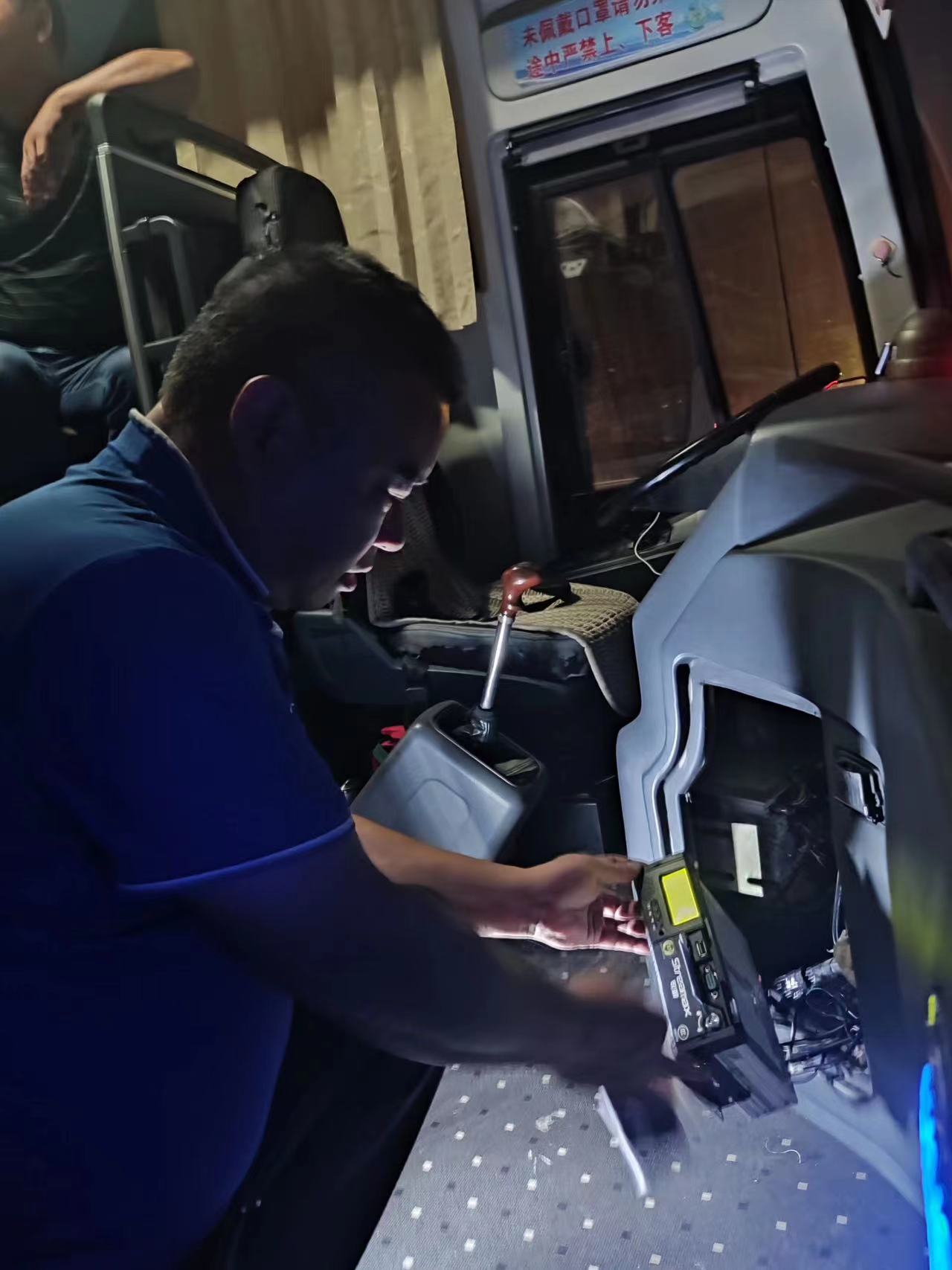 由于假期高速擁堵,車輛進(jìn)站時間延誤,班車駛進(jìn)車站后已到晚間,搶修人員趁著夜色立即對車輛的主動智能防控掉線原因進(jìn)行全系統(tǒng)排查。經(jīng)全面檢查后,發(fā)現(xiàn)主機(jī)內(nèi)SIM卡損壞導(dǎo)致故障。為保障車輛明日的正常運作,搶修師傅立即對SIM卡進(jìn)行更換,并對主動智能防控系統(tǒng)進(jìn)行詳細(xì)檢查,順利的完成了此次搶修工作。