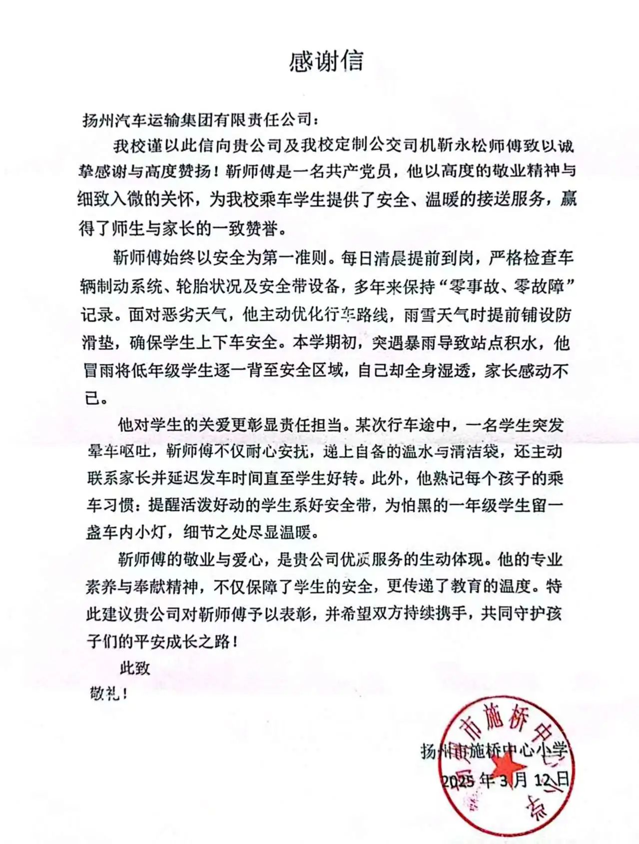 您現(xiàn)在的位置:首頁(yè) > 新聞縱橫 > 新聞視點(diǎn) > 紙短情長(zhǎng) 愛(ài)有回響丨揚(yáng)汽集團(tuán)校車(chē)司機(jī)優(yōu)質(zhì)服務(wù)獲學(xué)校點(diǎn)贊