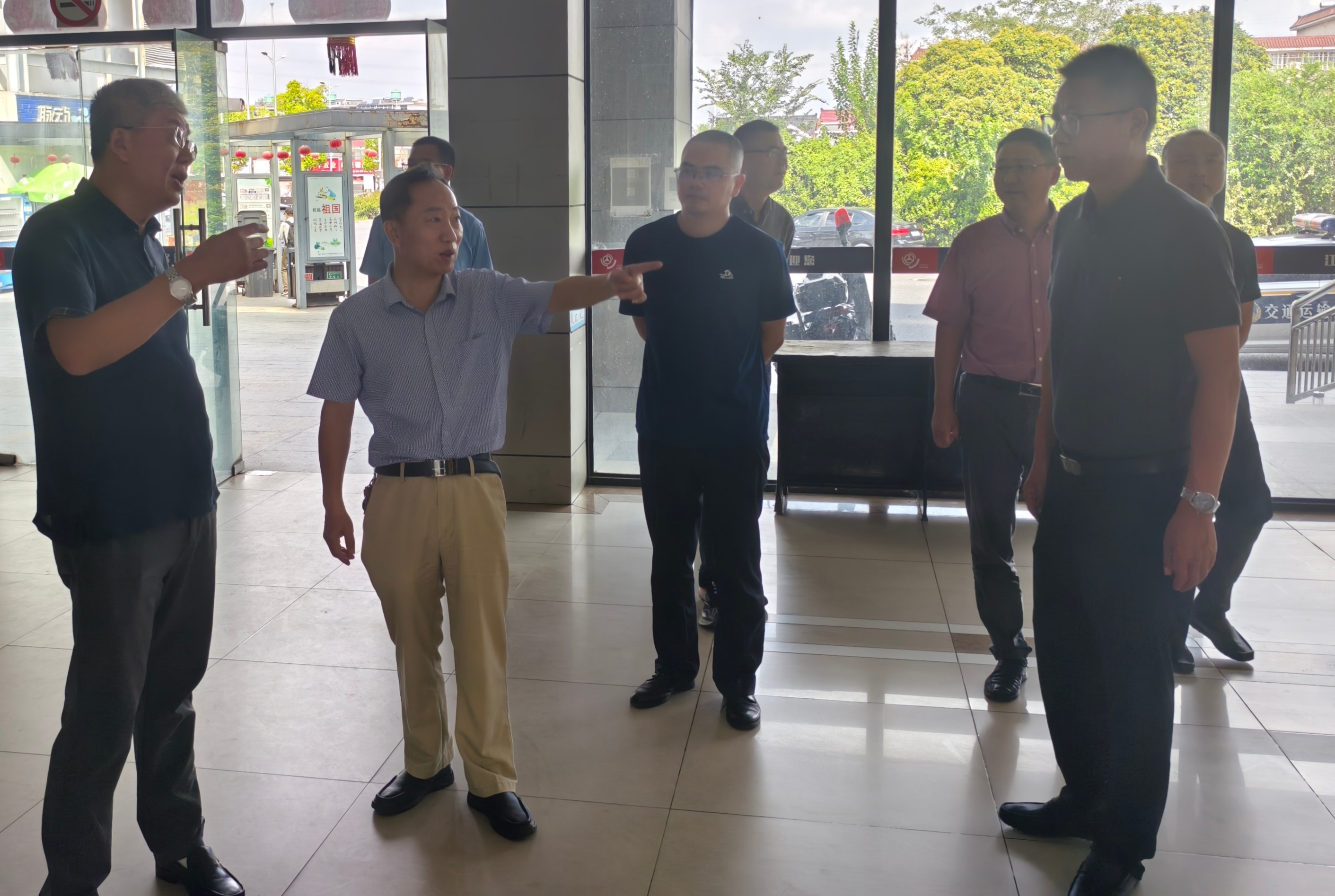 隨著國慶、中秋“雙節(jié)”臨近,為切實(shí)保障旅客出行安全與便捷,9月23日,揚(yáng)州市交通局黨委委員張?jiān)辣髱ш?duì)赴升級改造后的江都汽車客運(yùn)站“便捷站”,開展節(jié)前安全檢查。江都區(qū)交通局及江都汽車客運(yùn)站相關(guān)負(fù)責(zé)人陪同檢查。
